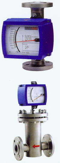 流量計測量原理 金屬轉子流量計是一種變面積式流量計,它通常具有一段直立的錐管和一只可以在其中自由的隨流量大小上下移動的浮子(如圖1)。當流體自下而上流經錐管時,流體的動能在浮子上產生的推力S和流體的浮力A使浮子上升。隨著錐管內壁與浮子之間的環形流通面積增大,流體動能在浮子上產生的推力S隨之下降。當推力S與浮力之和等于浮子自身重力G時,浮子處于平衡,并穩定在某一高度上,該高度位置對應的刻度指示流過流量計的流量。  |