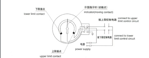 接點容量:10VA(無感) 高工作電壓:交流220V,接點為上、下限。