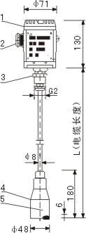 靜壓式液位變送器 結構類型 AK-LC纜式液位變送器 AK-LR桿式液位變送器 AK-LD直裝式液位變送器 AK-LC 外形尺寸 AK-LC纜式液位變送器 (普通形式連接) 1、變送器外殼 2、信號線纜接頭 3、傳感器電纜