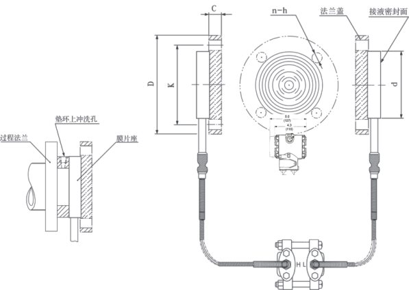 :接液蓋材料代號B,配用除316L鋼以外的遠(yuǎn)傳膜片。