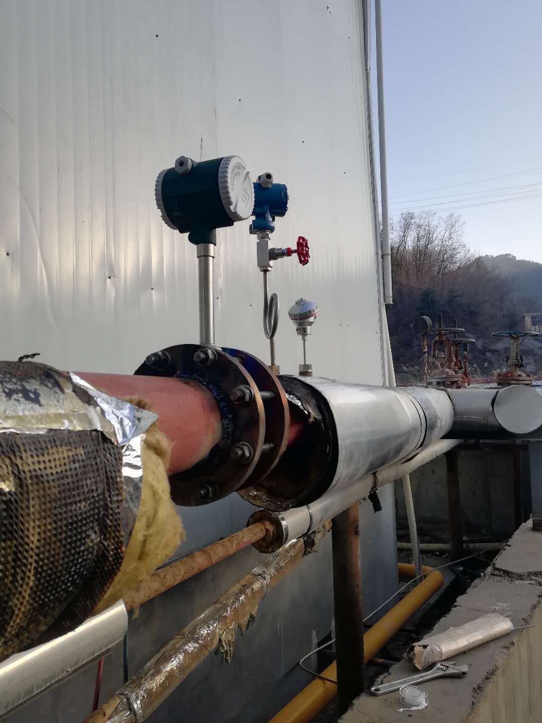為了正確計量蒸汽的質量流量,須考慮蒸汽壓力和溫度的變化,通過流量積算儀對蒸汽密度進行補償。測量蒸汽溫度的鉑電阻一定要規范安裝:測溫鉑熱電阻插入管道中心位置、鉑熱電阻安裝在流量計下游的5倍管徑處、安裝鉑熱電阻的管道位置采取保溫措施等,確保測得的溫度數值準確。在蒸汽壓力的測量中一定要注意,如果采用引壓管引壓,須進行零點遷移(因為引壓管內冷凝水的重力作用會使壓力變送器測量到的壓力與實際壓力之間出現一定的差值,引起密度補償的誤差),也可在流量積算儀內進行修正。壓力變送器安裝在蒸汽流量計下游的4倍管徑處,壓力變送器前的閥門、密封墊應完好暢通,以保證蒸汽壓力的準確測量。如果采用設定壓力、溫度進行補償,所設定的數值應力求接近實際,否則誤差很大,一般不建議采用。