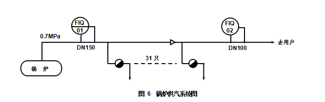 熱力公司懷疑蒸汽流量計(jì)不準(zhǔn),因?yàn)殄仩t房出口的流量計(jì)FIQ01穩(wěn)定顯示2.5 t/h左右的流量,而用戶端流量計(jì)FIQ02顯示時(shí)有時(shí)無,流量zui大時(shí)也只有0.75 t/h。